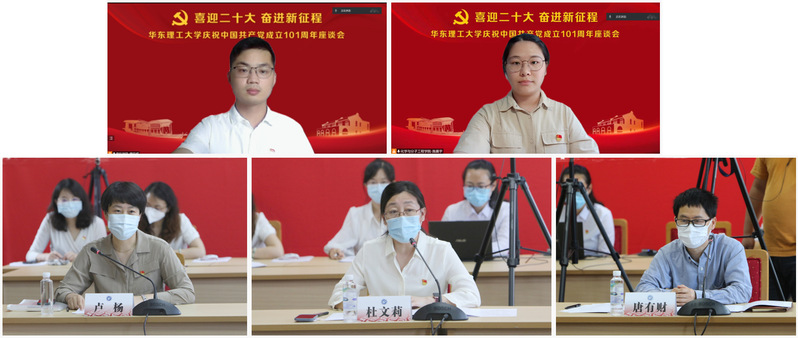 会议采用线上线下相结合的方式进行。各二级党组织书记、校党群部门负责人、专职组织员代表、基层党支部支部书记和师生党员代表共计65人参加了座谈会。